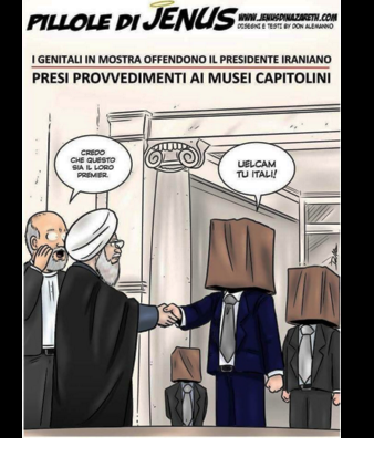 في ذات السياق، قال سياسيون من أحزاب تنتمي لليمين واليسار في إيطاليا إن رينتسي “لم يتغاضَ فقط عن ذكر سجل إيران في مجال حقوق الإنسان خلال المؤتمر الصحفي المشترك مع روحاني، بل تخلى أيضا عن الهوية الثقافية للبلاد عندما غطى تماثيل النساء العارية”.