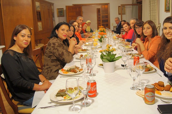 وقبل تناول الطعام، أكد السفير عودة في كلمة ترحيبية، على مكانة المرأة الفلسطينية ودورها في النضال الاجتماعي والسياسي، مؤيدًا إياها على انتزاع حقوقها ومواظبتها لتحقيق العدالة والمساواة لها. وفي المقابل تحدثت المديرة العامة لجمعية المرأة الفلسطينية العاملة للتنمية، آمال خريشة، عن أهم المحطات النسوية في الضفة الغربية وقطاع غزة، اجتماعيًا وسياسيًا، وعن مشاركة الوفد وإضافاته لمؤتمر “مسار”، الذي انتهى بالتأكيد على أن فلسطين قضية محورية ومركزية في النضال النسوي العربي.
